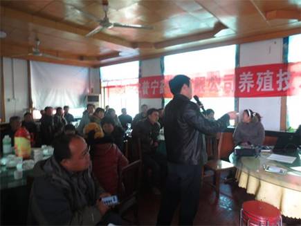 王總現(xiàn)場向養(yǎng)殖朋友們展示公司產(chǎn)品