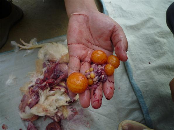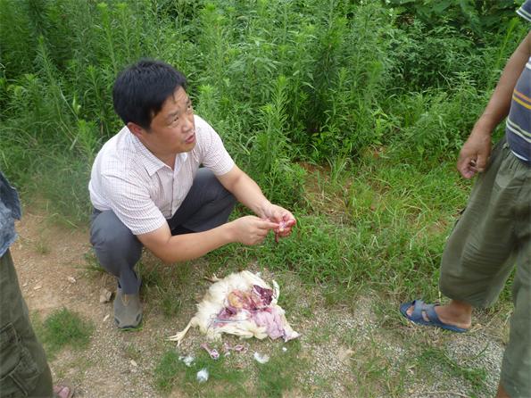 7月19日,公司王總在湖北省蘄春縣一家蛋雞場做技術(shù)指導(dǎo)。(解剖案例疾病圖譜)